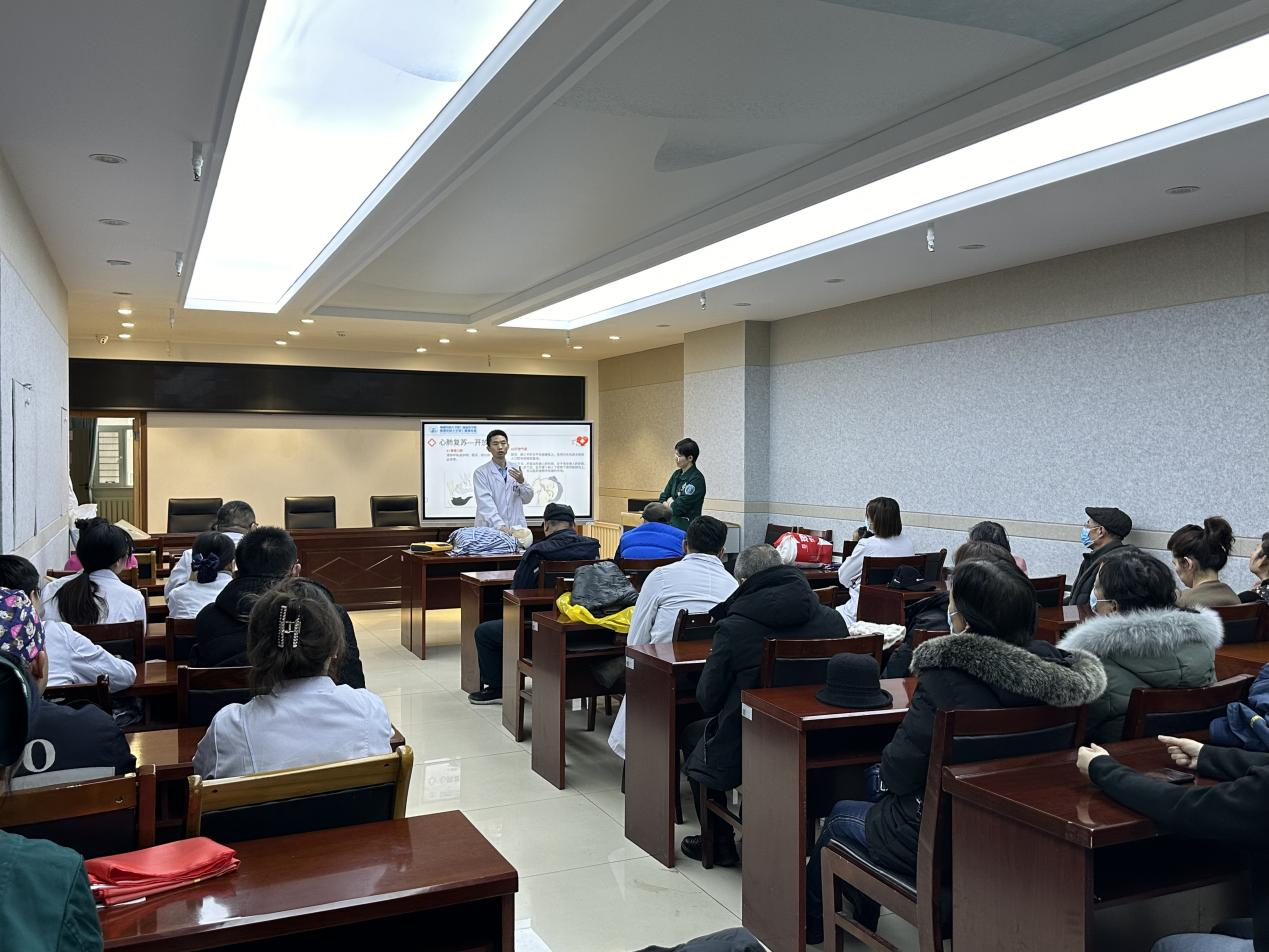 第一环节由院急救中心主任马志强、护士长刘春枝携急救中心医护人员为居民及工作人员进行急救知识普及,从院前急救知识科普、海姆立克、徒手心肺复苏及便携式除颤仪的使用等方面展开。随着社会对公共医疗的重视,越来越多的公共场所放置了便携式除颤仪(简称“AED”),但大众对便携式除颤仪什么时候使用、如何使用的认识还比较匮乏。作为第一现场的目击者及时判断患者是否发生心脏骤停(无反应、无呼吸或者濒死叹息样呼吸)并立刻开始针对心脏骤停的急救至关重要。科普现场与居民互动,指导操作要领,争取人人会急救、人人参与急救,提升社区急救能力,保障人民群众安全。“这次培训受益匪浅,内容精彩且实用,非常贴近日常生活,不但可以保护自己,也可以对有需要的人及时伸出援手。”李阿姨说。